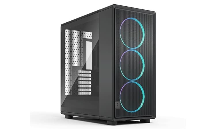 Les différences par rapport à la version non XL se feront notamment au niveau de la ventilation montée de série. Ici, on pourra aller jusque trois Fractal Momentum RGB en 140 mm là où il fallait se contenter de modèles en 120 mm pour l’Epoch non XL. Le support de la carte graphique est aussi plus important, passant de 372 mm (345 mm avec radiateur en façade) à 425 mm (395 mm avec radiateur frontal).