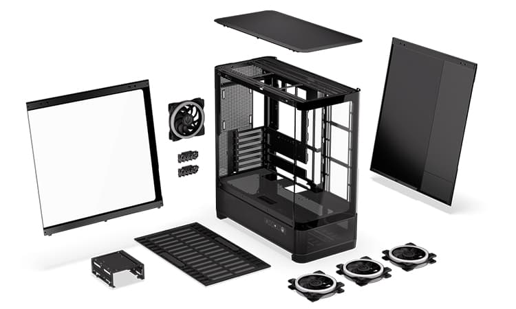 En interne, le châssis propose un plateau de carte mère suffisamment large pour accueillir un modèle au format E-ATX, ATX, micro-ATX et mini-ITX. Sinon, il dispose aussi des ouvertures lui permettant d’accueillir des cartes à connecteurs inversés.