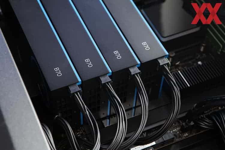 Les cartes Arc Pro B70 d’Intel ont été lancées récemment, mais il y a eu peu de revues de presse. En effet, il s’agit là de cartes professionnelles et Intel ne semble pas être enclin à distribuer des samples à toutes les rédactions. HardwareLuxxx en revanche a les bonnes grâces des bleus puisque le média allemand recevait une config Battlematrix complet. On parle d’une configuration à quatre cartes notamment.