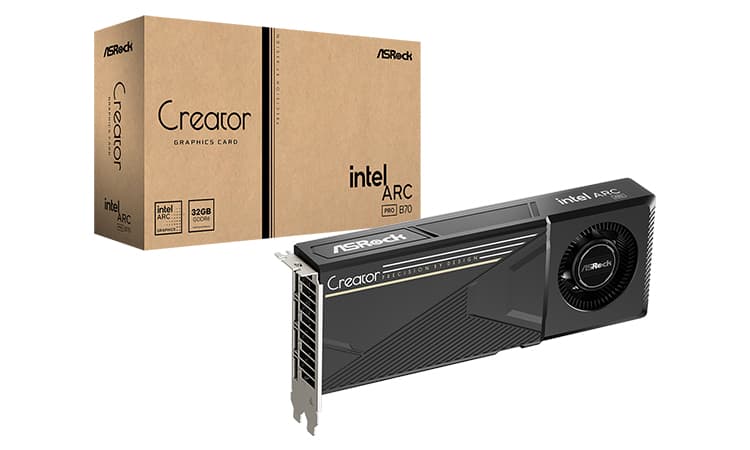Nous avons vu ce matin qu’Intel lançait ses nouvelles cartes graphiques professionnelles, les Arc Pro B70 et Arc Pro B65. Dans un même temps, les partenaires de l’entreprise annonçaient leurs design exploitant ces GPU. C’est notamment le cas d’ASRock qui propose ses Arc Pro B70 Creator et Arc Pro B70 Passive.