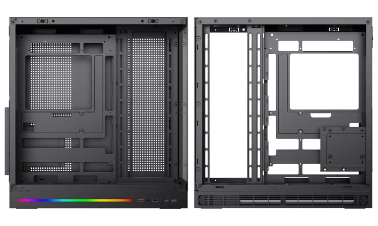 Le refroidissement pourra être complet puisque nous retrouvons un total de dix emplacements en 120 mm. Ces derniers prennent place dans le haut, dans le bas, sur le côté de la carte mère et à l’arrière. Avec ceci, le support de radiateur de watercooling en 360 mm est également assuré.