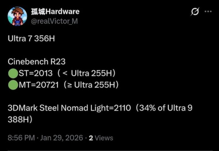 Core Ultra 7 356H : premiers scores !