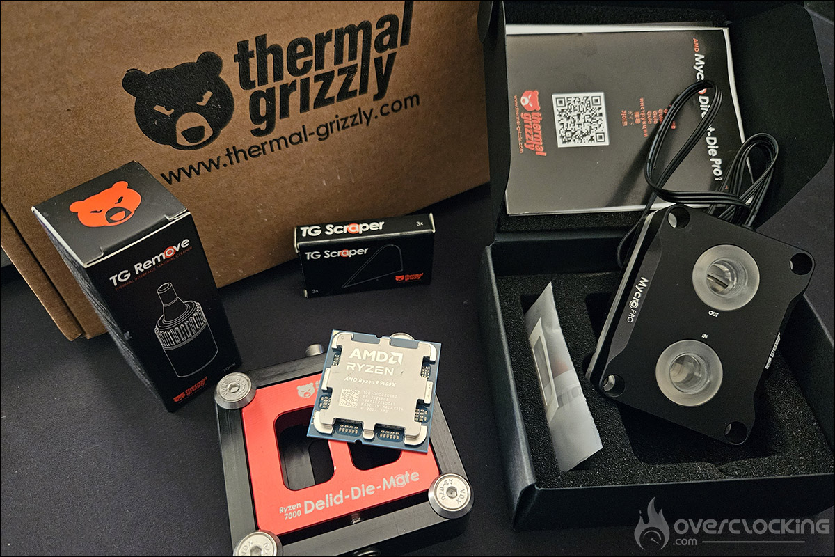 Voilà un projet qui me tenait à cœur depuis un petit moment, afin de tester les différents outils proposés par Thermal Grizzly afin de delid, décapsuler, notre processeur AMD Ryzen 9 9900X. Pour ce faire, nous utiliserons l’outil Delid-Die-Mate, le waterblock AMD Mycro Direct-Die PRO V1, les grattoirs TG Scraper et le nettoyant Remove Cleaner. Nous n’en sommes pas à notre coup d’essai concernant le delid de processeur, nous l’avions fait avec notre Intel i9-14900K afin de tester le système de refroidissement EK-Nucleus AIO CR360 Direct Die D-RGB, mais, sur un processeur AMD, ce sera notre première expérience.