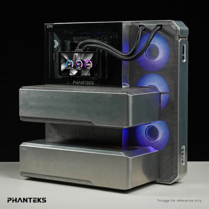 Du côté de Phanteks, la marque tease sur un nouveau projet de boîtier : l’EXO 626. Cette nouvelle référence adopte un design pour le moins intéressant, se basant sur une conception open frame… plus ou moins. Effectivement, les différents composants constituants une configuration disposent de compartiments dédiés. Disons que le boîtier ne se résume pas qu’à une simple boîte carrée, tout simplement.