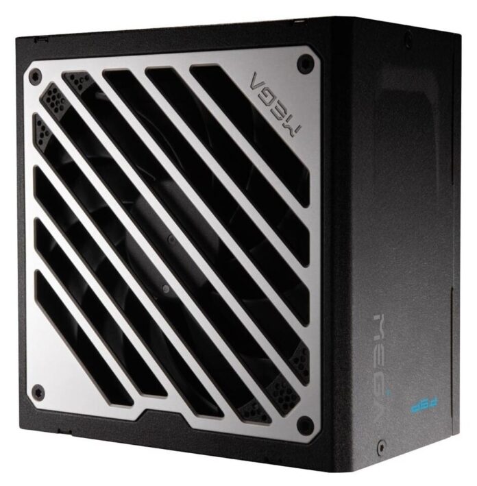 Nos confrères on donc testé l’alimentation FSP Mega GM 1000W. De prime abord, le déballage révèle un bloc d’alimentation aux dimensions étonnamment contenues permettant d’envisager son utilisation dans toutes les configurations. Avec ses mensurations de 150 x 150 x 86 mm, il s’intègre ainsi facilement dans la majorité des boîtiers actuels sans jouer des coudes. Le constructeur a manifestement soigné l’esthétique de son nouveau bébé. Fini les boîtes métalliques tristounettes d’antan. Le design extérieur se veut résolument moderne avec des angles habilement inclinés et de discrètes rainures décoratives. Une superbe grille de ventilation supérieure en aluminium gris titane surplombe le tout, apportant une touche premium indéniable à l’ensemble. En outre, cette calandre élégante dissimule habilement un ventilateur FDB de 135 mm prêt à souffler avec vigueur en cas de forte sollicitation.
