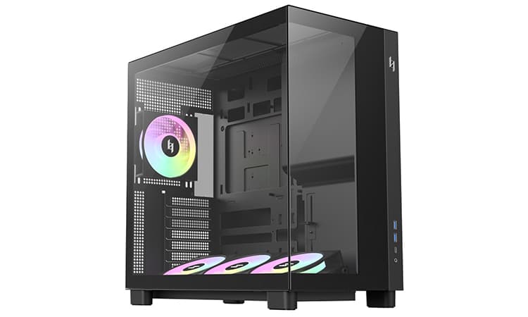 Avec ce boîtier, nous retrouvons une référence qui adopte un design de type aquarium. Ce dernier dispose donc d’une face avant en verre trempé… Idem pour son panneau latéral soit dit en passant. Jusque là, rien d’original.