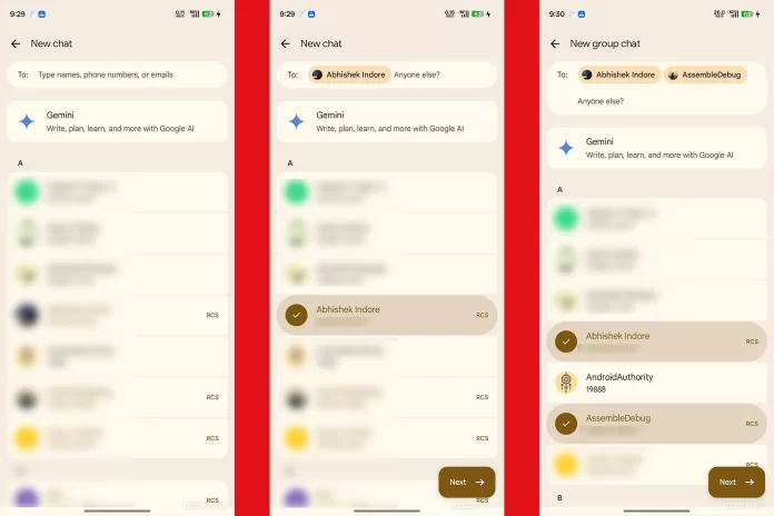 Jusqu’à présent, initier une discussion à plusieurs nécessitait d’appuyer sur « Créer un groupe » situé en haut de l’écran. La dernière version bêta de l’application (messages.android_20260217_00_RC00.phone.openbeta_dynamic) supprime purement et simplement cette option. Désormais, l’interface bascule par défaut sur un mode de sélection multiple dès qu’on touche l’icône de nouveau message.