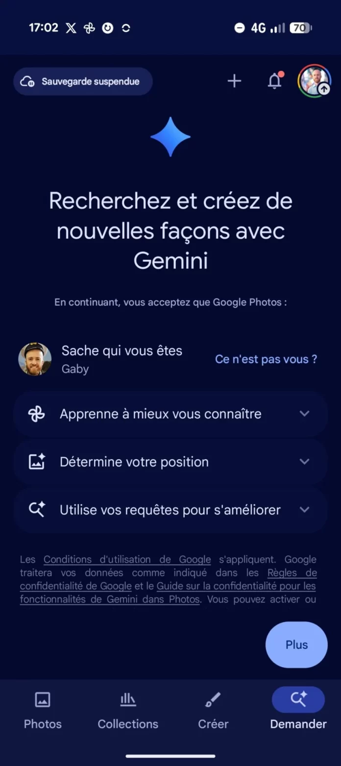 Disponible depuis un moment outre-Atlantique sous le nom « Ask », ce nouvel onglet « Demander » est apparu ce week-end sur notre Google Pixel 10 avec la version 7.70 de Google Photos. Pour l’activer, l’application vous demande de nouvelles autorisations pour que Gemini puisse rechercher et modifier vos photos et vidéos, mais également vous raconter vos souvenirs sous forme de récap, narré, ou encore obtenir des suggestions de titres pour vos souvenirs.