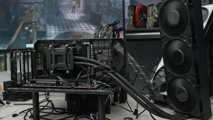 Un vidéaste sur YouTube procède à un bricolage un peu particulier : monter un kit watercooling de serveur sur une RTX 3080. Les effets se font rapidement ressentir puisque les performances sont divisées par deux, les fréquences augmentent idem pour les FSP dans les jeux vidéos. Le système est bricolé, mais ça fonctionne très bien !