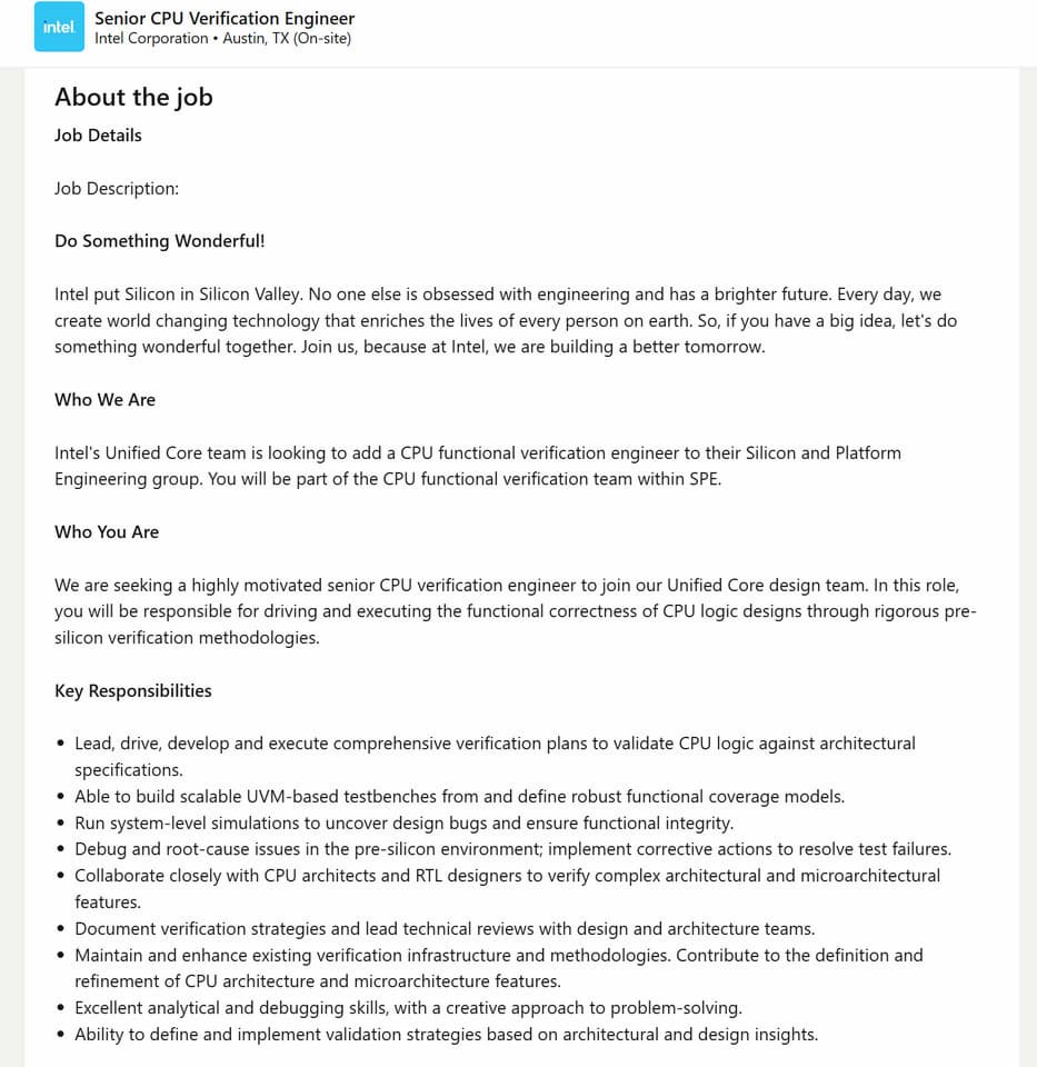 Pour l’instant, il ne s’agit que d’une offre d’emploi, nous ne savons strictement rien des plans à venir de l’entreprise. Nous ne savons pas si l’équipe dédiée aux cœurs unifiés est déjà constituée et qu’ils cherchent à la compléter où s’ils sont tout juste en