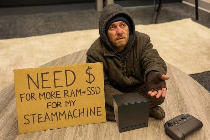 De cette manière, les futurs acquéreurs d’une Steam Machine pourront se tourner vers le marché de l’occasion ou encore chasser les bons plans afin de disposer d’un prix plus compétitif. Dit comme ça, la démarche peut paraître logique mais on peut aussi la considérer sous un autre éclairage. En effet, comme le Steam Deck, Valve va assurer la commercialisation de la Steam Machine. Intégrer la RAM et le SSD par ces temps de fortes turbulences est un risque majeur pour l’entreprise. En cas de retournement brutal des prix, c’est Valve qui devra par exemple sacrifier ses marges pour liquider ses stocks. Car soyons lucides, si trouver un bon plan ou une bonne occasion sur un SSD ne devrait pas poser de gros problèmes à une large majorité, trouver de la DDR5 (So-Dimm)