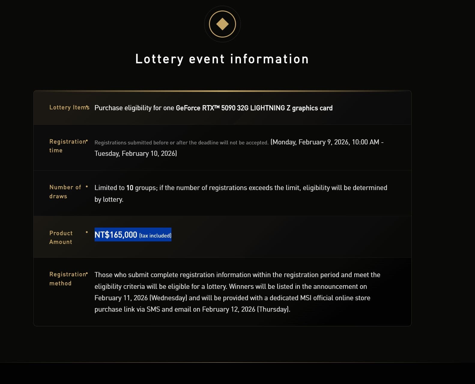 La RTX 5090 Lightning Z est une carte graphique ultra haut de gamme à destination des passionnés et des overclockers extrêmes. C’est une carte qui a fait parler d’elle durant le CES cette année puisqu’elle signe le retour de la marque dans ce secteur ultra-compétitif. Aujourd’hui, nous apprenons le prix de vente de la carte, clairement, il faudra avoir un portefeuille bien garni d’une part. D’autre part, il faudra être chanceux. Oui, la vente se fait sur un système de loterie… À Taïwan du moins.