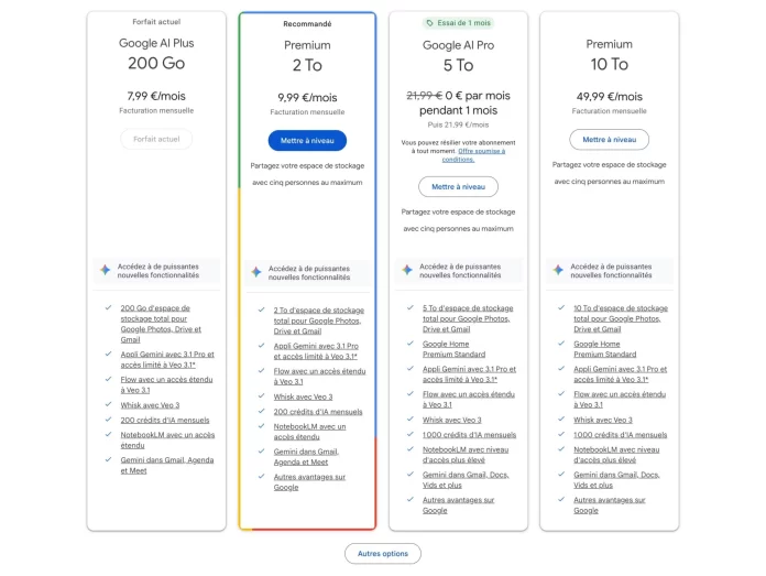 Jusqu’à présent, l’offre AI Pro proposait le même volume que le forfait Premium standard à 9,99 €, ce qui pouvait freiner les gros consommateurs de données. Désormais, ces 5 To sont partagés entre les différents services de l’écosystème : les emails sur Gmail, l’hébergement de fichiers sur Google Drive et la sauvegarde de photos et vidéos en haute résolution sur Google Photos.