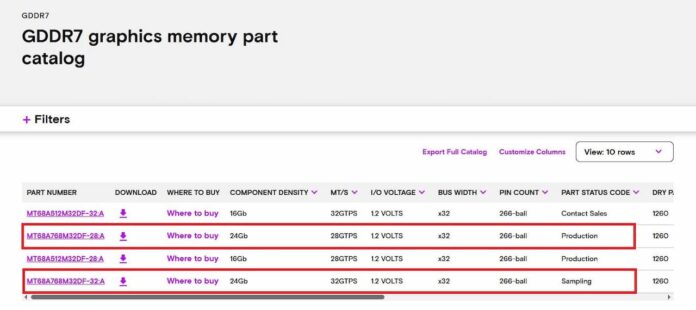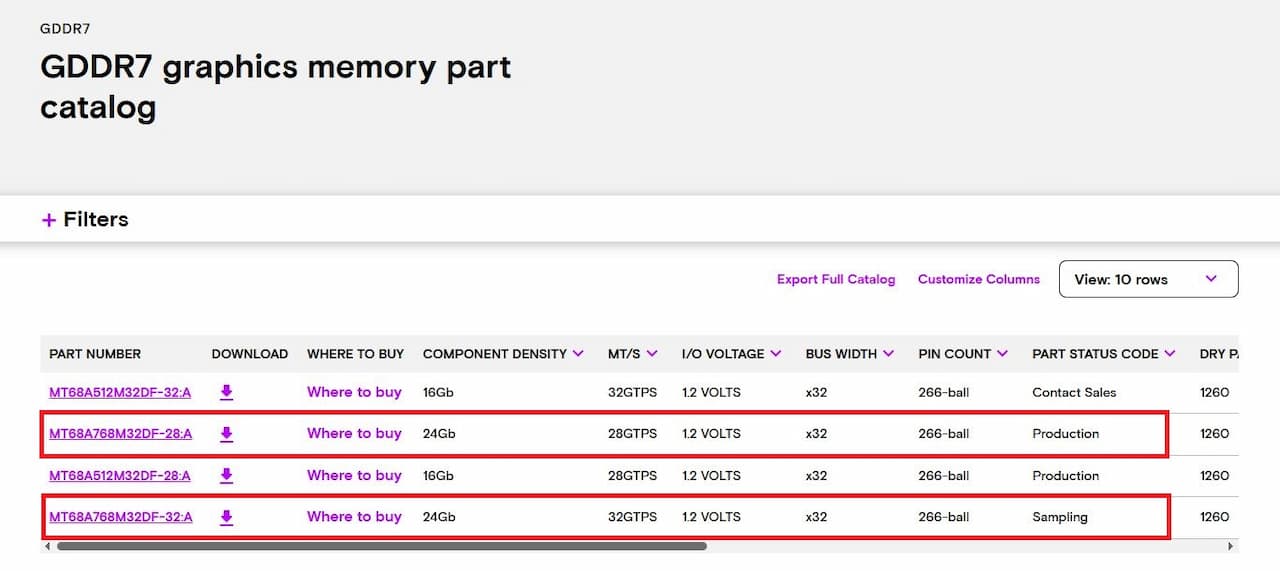 Avec ces puces, Micron nous propose de la GDDR7 de grosse capacité. L’entreprise entre donc en concurrence avec Samsung ainsi que SK Hynix dans ce secteur. Pour l’instant, seules les puces de 28 Gbps sont entrées en phase de production. Des puces plus rapides seront également proposées, on parle de vitesses de 32 Gbps. Cependant, ces dernières n’arriveront que plus tard puisqu’elles ne sont qu’en phase d’échantillonnage. C’est en tout cas ce que renseigne le site de l’entreprise.