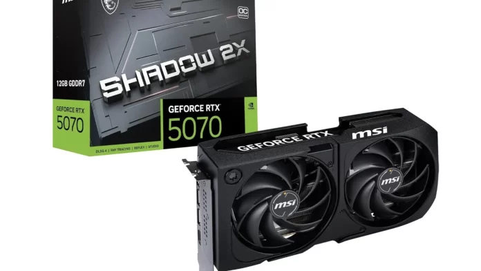 En ce moment sur Amazon, la carte graphique MSI GeForce RTX 5070 12G Shadow 2X OC (avec 12 Go de mémoire vidéo dédiée) tombe à 599 euros au lieu de 689 euros. Soit une belle ristourne de 90 euros. C’est une aubaine si vous souhaitez vous équiper d’un GPU dernier cri ultra performant pour profiter à fond des plus beaux titres AAA.