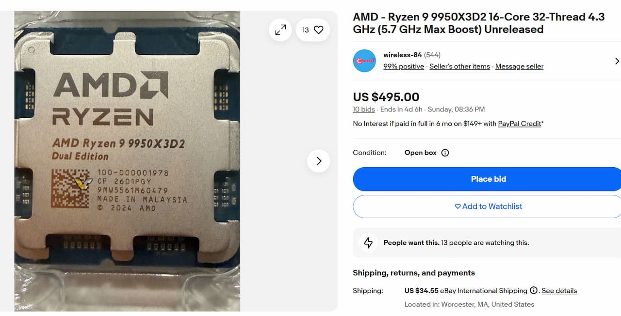 Le Ryzen 9 9950X3D2 déjà en vente sur eBay… Puis retiré ! Un CPU issu des canaux OEM ?