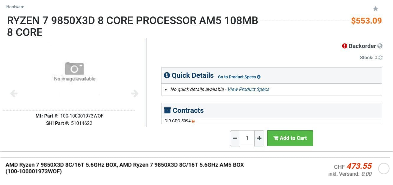 Petit à petit, l’oiseau fait son nid et le Ryzen 7 9850X3D arrive en boutique. Bien entendu, ce sont les habituelles apparitions dans le commerce avant lancement. Comme toujours, nous retrouvons des prix placeholder mais qui sont plus proches de la réalité que ceux affichés il y a quelques années.