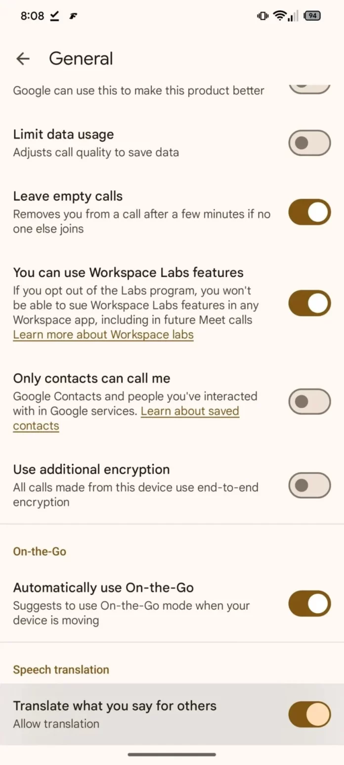 Une fois n’est pas coutume, c’est en fouillant dans le code de la version bêta de l’application Google Meet que l’on voit apparaître des lignes annonçant de futures fonctionnalités. C’est le cas aujourd’hui avec l’option « Traduisez ce que vous dites pour les autres », dont l’affichage a pu être forcé dans les paramètres. Sa présence ne fait donc plus beaucoup de doutes sur une future intégration de la fonctionnalité dans Google Meet.