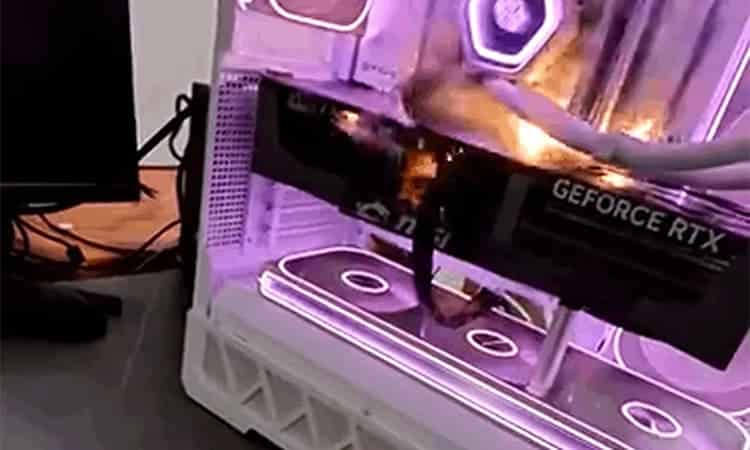 Mauvaise expérience pour cet utilisateur de la plateforme chinoise Bilbili qui poste une vidéo montrant le premier démarrage de son PC. Effectivement, à peine a-t-il appuyé sur le bouton power que des étincelles et des flammes jaillissent de la carte. Évidemment, c’est assez spectaculaire à voir, mais c’est aussi triste de voir une si grosse carte partir en fumée sans même avoir eu le temps de servir.