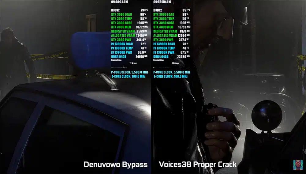 Denuvo est un DRM solide, mais qui, en contrepartie, tire sur les ressources de votre PC. Sur le dernier Resident Evil, en passant par le crack de Voices38, les performances sont légèrement améliorées. Effectivement, le framerate profite d’une amélioration avoisinant les 5% avec un nombre d’images/seconde passant de 79 à 85 FPS ou de 87 à 92 FPS suivant les scènes. À noter que les scènes sont enregistrées avec ShadowPlay ce qui peut faire perdre en FPS.