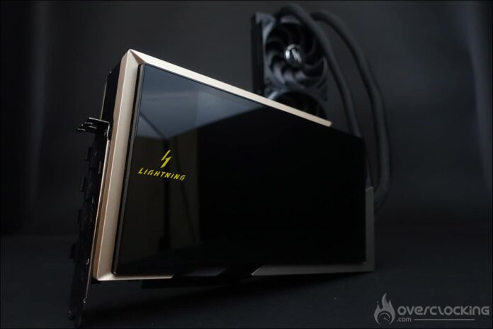 Pour rappel, cette Lightning Z est une carte à destination des overclockers conçue avec un PCB custom adoptant deux prises d’alimentation et 40 étages d’alimentation. La théorie veut que cette configuration permette d’atteindre de hautes fréquences lorsqu’elle est placée entre de bonnes mains. De plus, par défaut, les limites de consommation de 800 et 1000W permettent déjà de se faire plaisir.