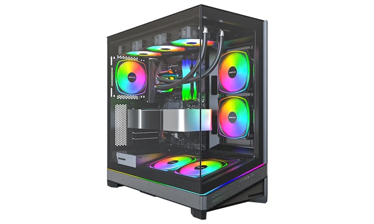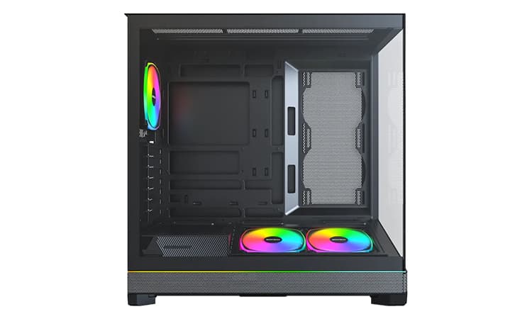 Du côté de Montech, nous retiendrons l’annonce d’un nouveau boîtier avec le Sky 3. Ce dernier, un modèle au format moyen tour, adopte un design aquarium et dispose d’une chambre inférieure adaptative permettant un changement de position du bloc d’alimentation vers l’avant ou l’arrière du boîtier. Ceci permettra de privilégier le refroidissement de la carte graphique ou du CPU.